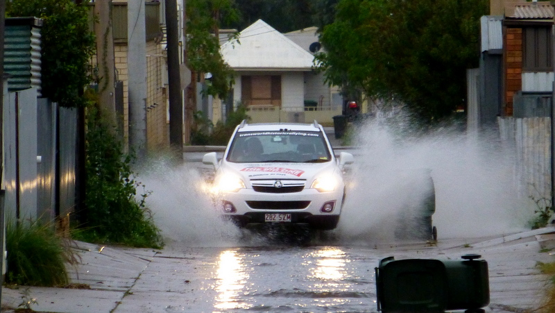 P1020259 October 11, 2013 800 × 451 When it rains in Broken Hill, it really rains – that why there are huuuuge gutters. But, the flooded lanes are useful for washing mud from under the car.